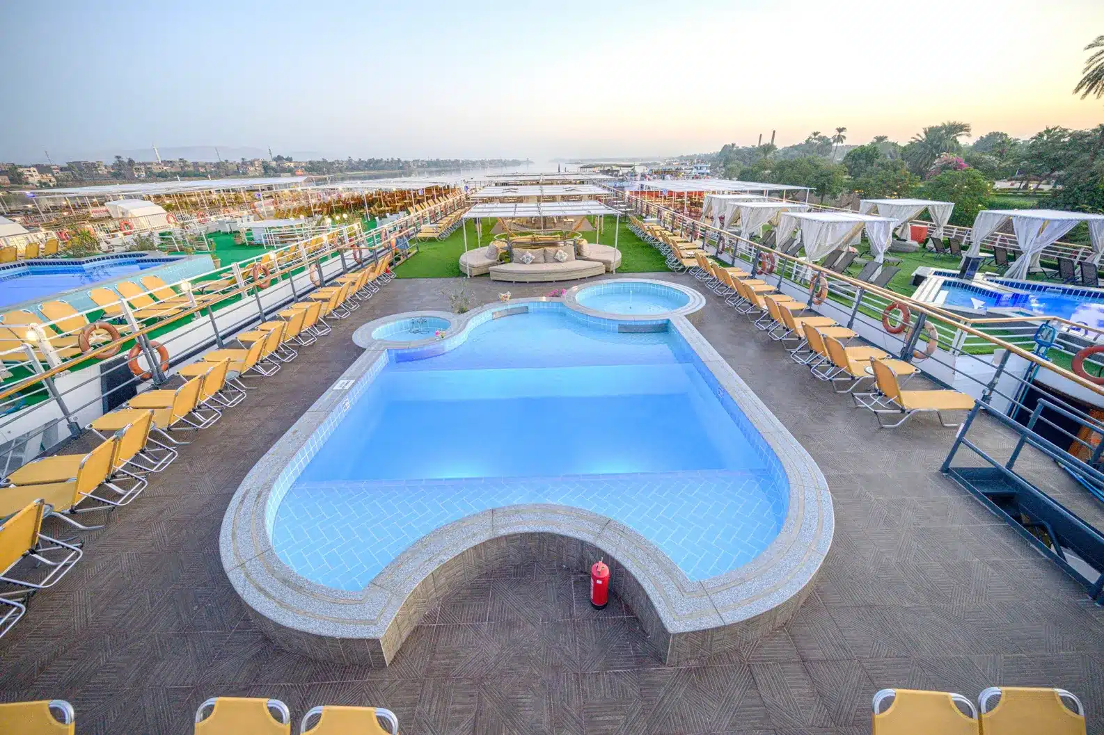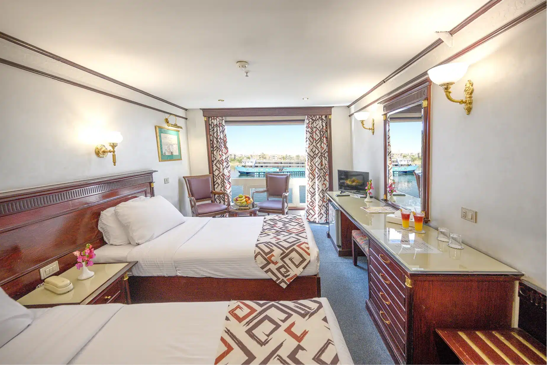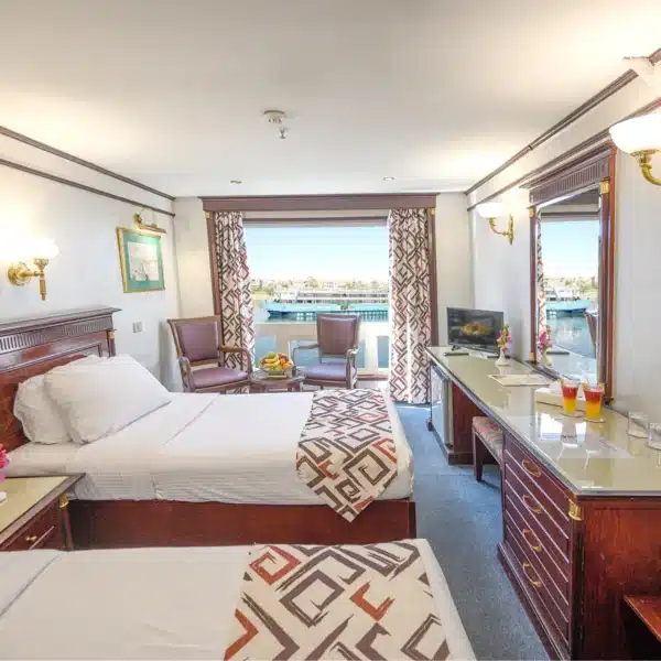 Experience the allure of ancient Egypt in unparalleled luxury and comfort aboard the magnificent Lady Carol Nile cruise ship. The Magic Lady Carol offers an outstanding onboard experience, where every detail is meticulously crafted to ensure your utmost satisfaction. From the moment you step aboard, you’ll be enveloped in an ambiance of refined sophistication, where impeccable service and warm hospitality are the hallmarks of your voyage. Indulge in spacious and tastefully appointed cabins, savor delectable cuisine, and unwind in stylish lounges and sundecks as you soak in the breathtaking scenery.