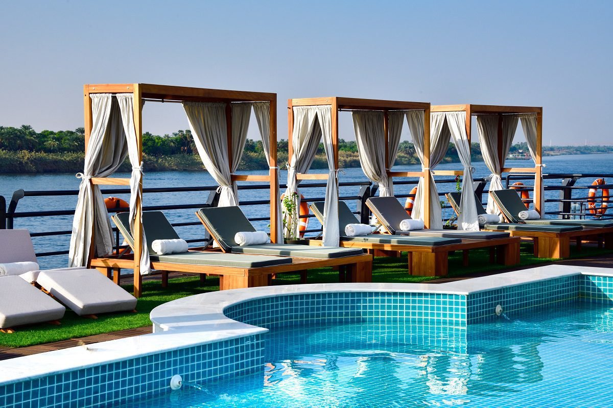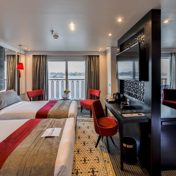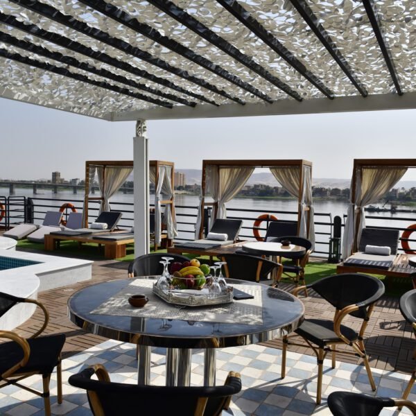 MS Mayflower Nile Cruise is one of the best Egypt Nile Cruises. Onboard, you’ll find spacious cabins and suites, each thoughtfully designed to create a haven of relaxation after days filled with exploration. Indulge in delectable cuisine at the ship’s restaurants, unwind by the pool, or take in the breathtaking scenery from the sun deck.