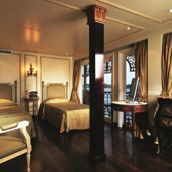 Step aboard the Movenpick Misr Steamer Nile Cruise for an unparalleled journey through the heart of ancient Egypt, where the wonders of Luxor and Aswan unfold before you. Indulge in the allure of a bygone era aboard the Movenpick Misr Steamer, a luxurious vessel where classic charm meets modern comfort. Let the gentle currents of the Nile carry you on an unforgettable journey through Egypt’s heart, as you discover the captivating landscapes and iconic monuments that have mesmerized travellers for centuries. Unwind in the refined ambience of the Movenpick SS Misr, where spacious cabins, delectable cuisine, and impeccable service create an oasis of tranquillity.