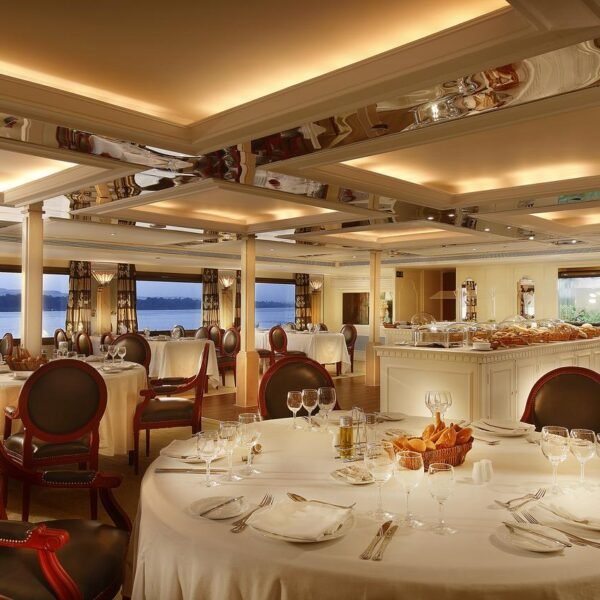 And as you explore these legendary sites, you’ll be accompanied by expert guides, whose passion for Egypt’s rich history will bring each monument to life. The Sonesta Nile Goddess Cruise Ship itself is a haven of refined indulgence. Unwind in your beautifully appointed cabin, complete with plush furnishings and panoramic windows that frame the ever-changing scenery. And immerse yourself in the ship’s vibrant atmosphere, where live music, cultural performances, and engaging activities ensure that every day is filled with memorable moments.